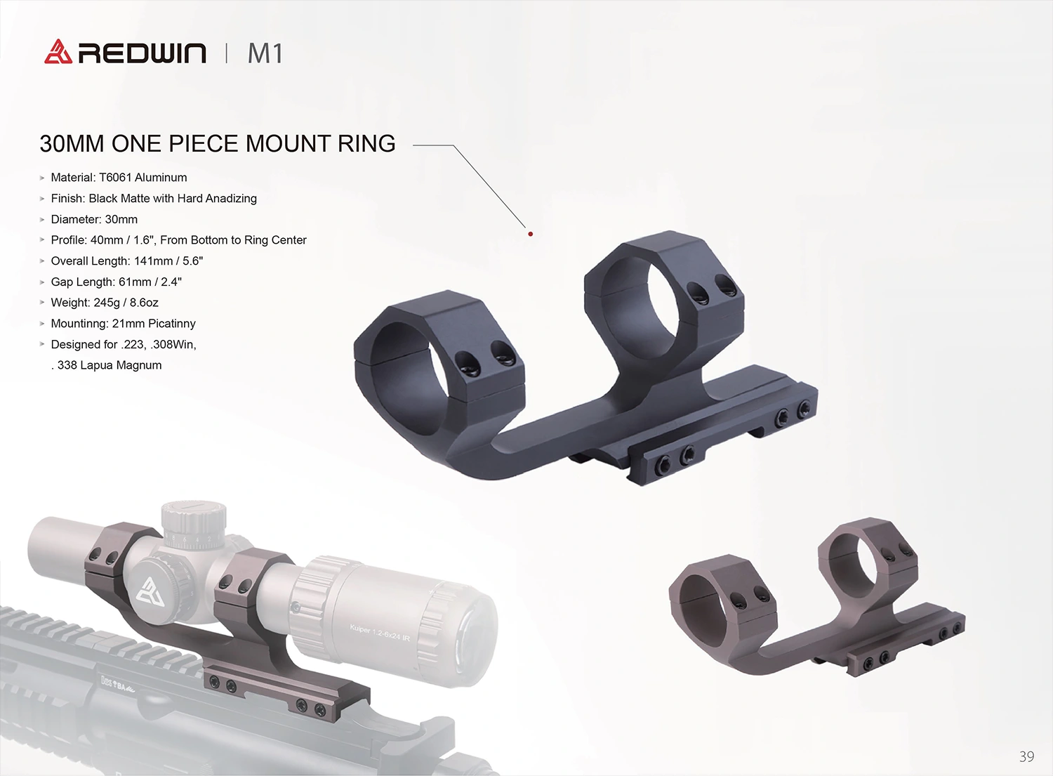 Luneta jest dostępna w dwóch wersjach kolorystycznych czarnym i brązowym. Montaż jednoczęściowy M1 na szynę picatinny na tubus 30mm do Scarlet można dokupić u nas w cenie 150 zł.